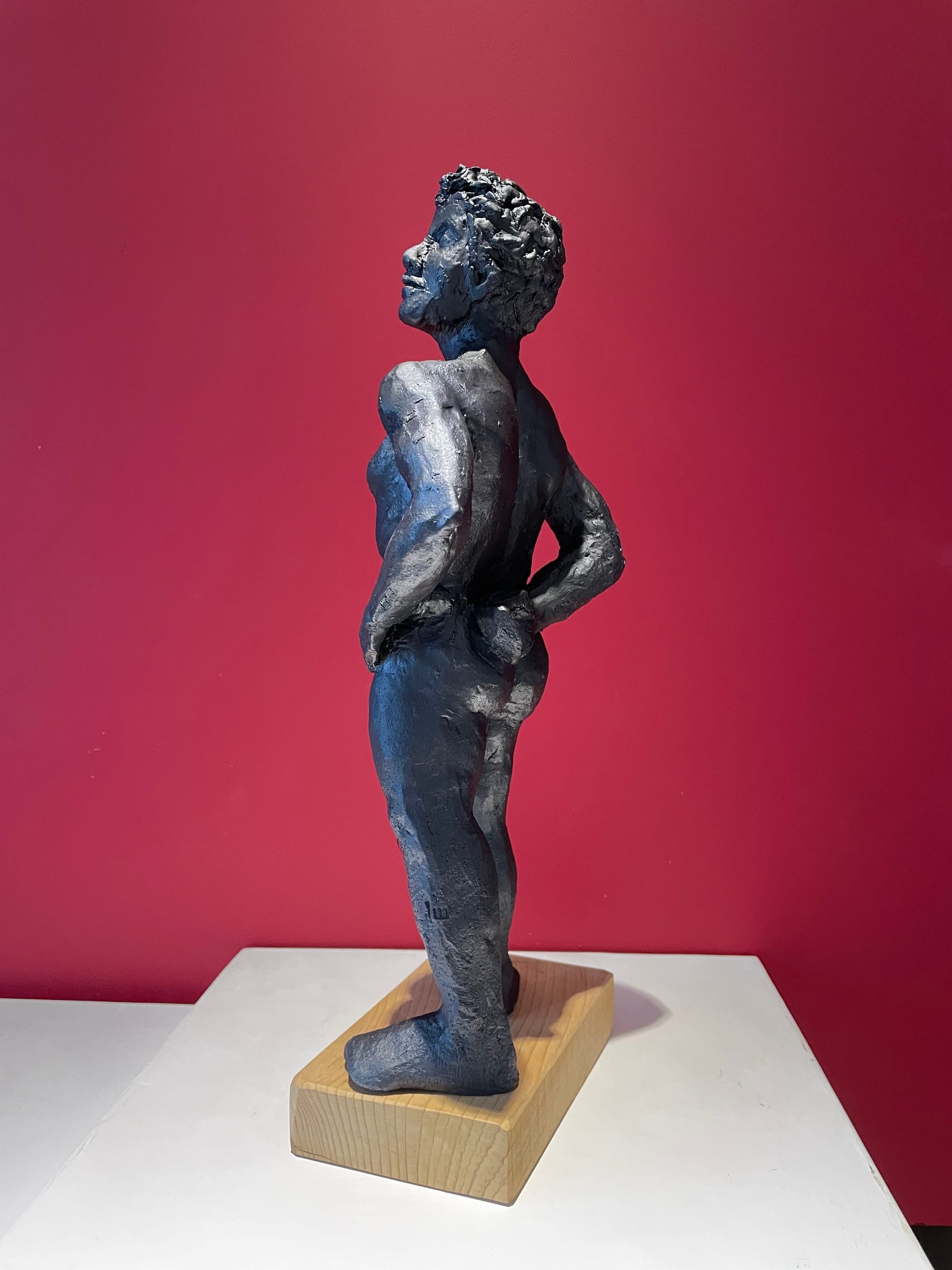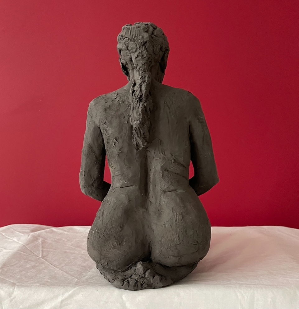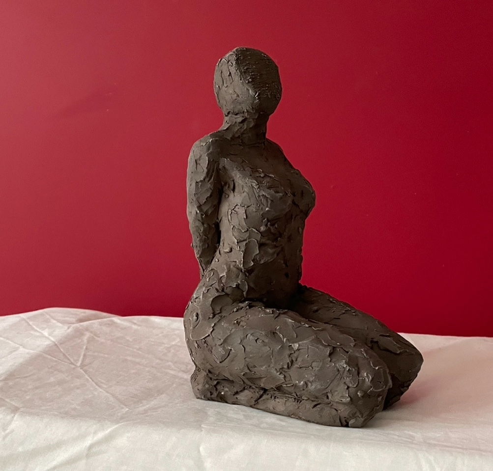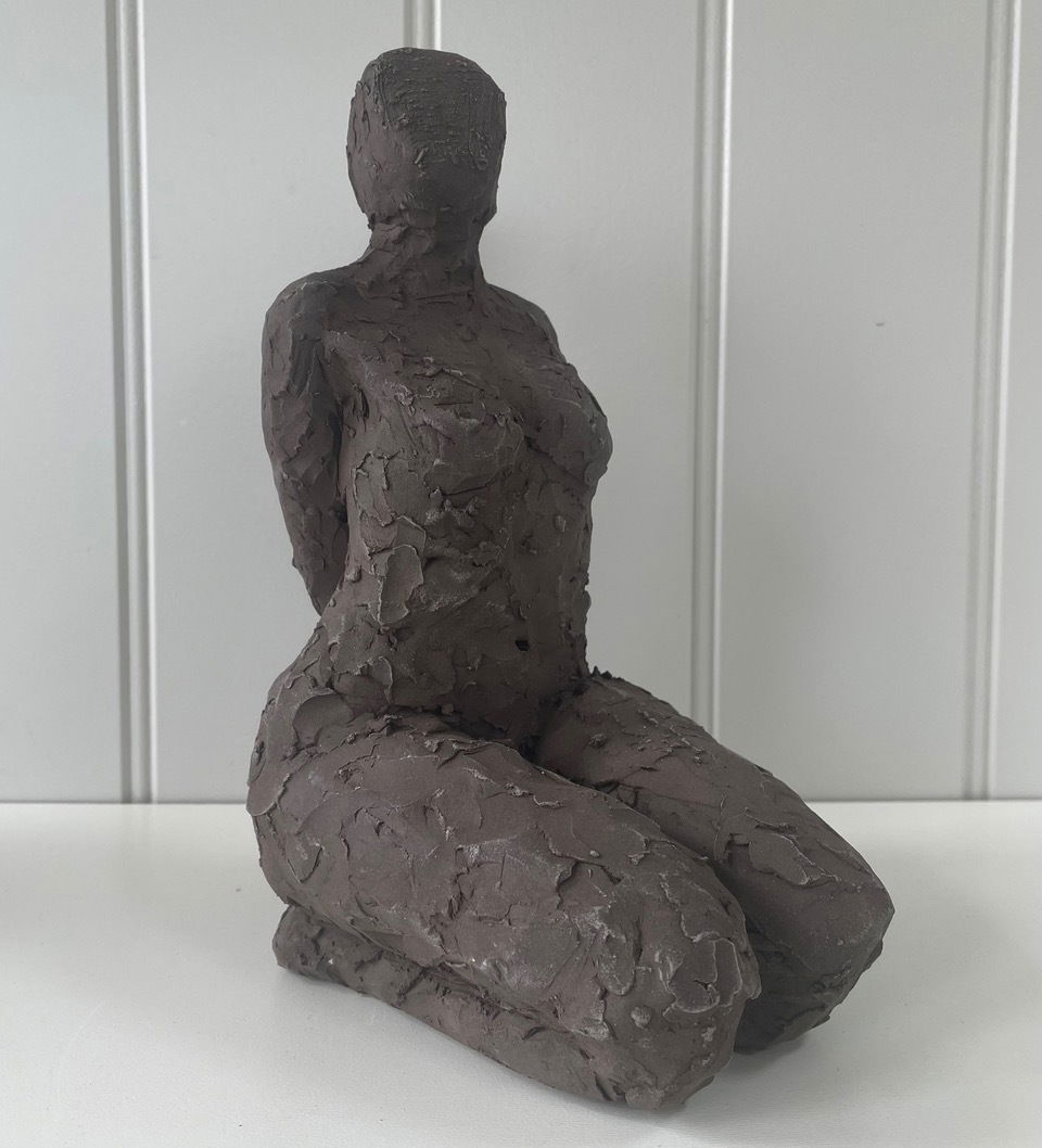 Sculpture in clay has been a part of my life since attending a weekend course in 2016. I became hooked! With a long career in the NHS the human body is well known to me and this helped with sculpting the figure. I learnt from Karin Ort, working from life models at the Phoenix Studio, Towersey near Thame , Oxfordshire with weekly term-time classes. When life changed during Covid (2020/21) and studio visits were impossible, more stylised human in hard-to-adopt postures started to appeal. There is much to learn and enjoy in the techniques and process.